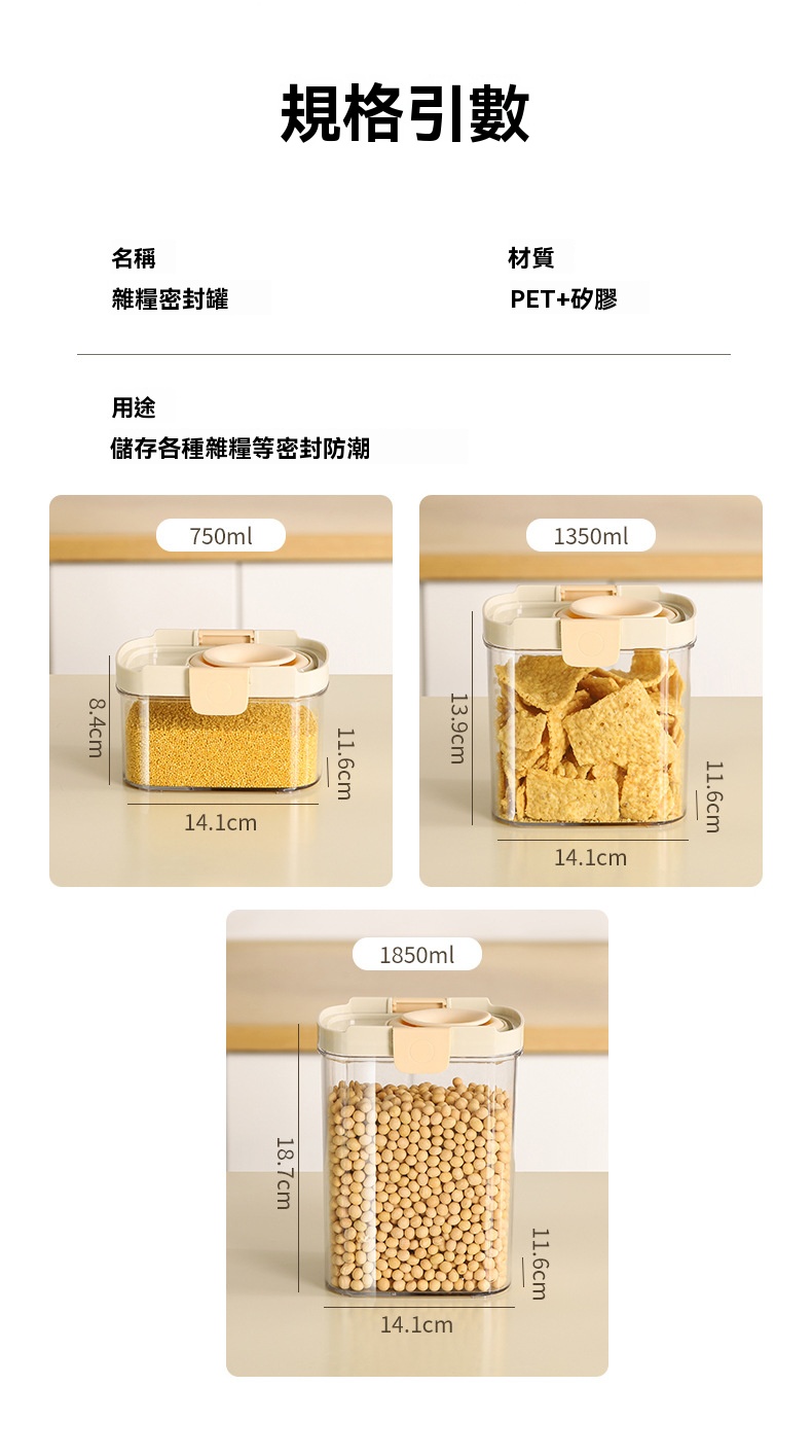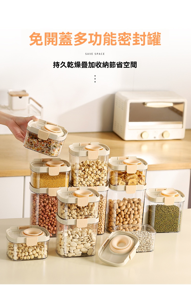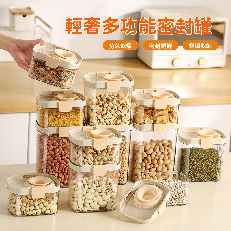 2分鐘前密封罐食品級儲存矽膠鎖扣收納盒廚房香料豆子堅果五穀雜糧儲物罐 - 【限時秒殺】:四組入 NT$ 1298